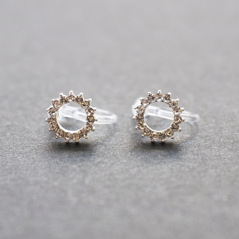 ✨Sparkly circle rhinestone invisible clip on earrings.