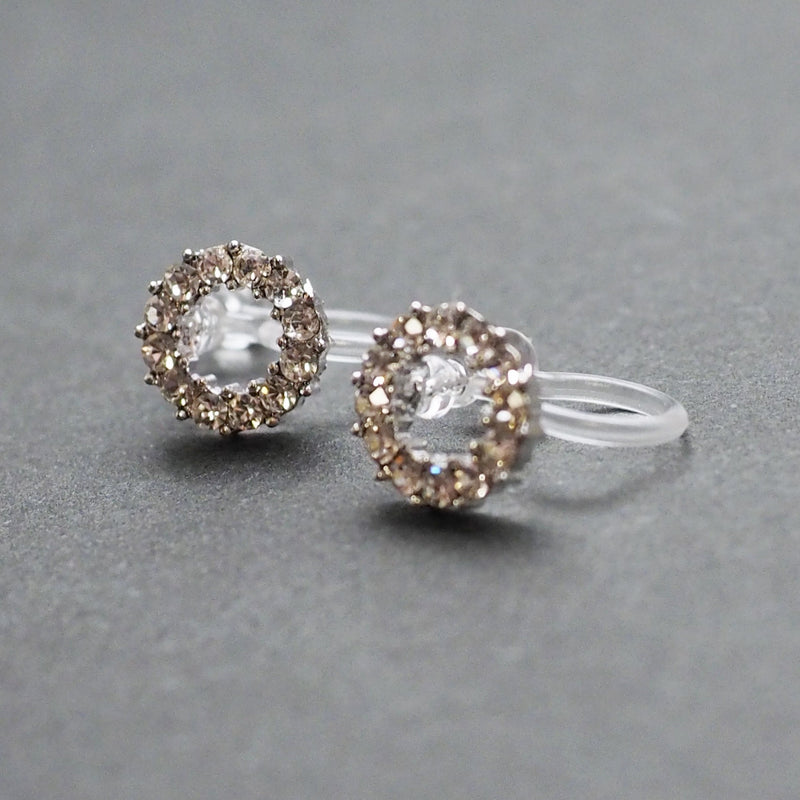 Crystal Open Circle Invisible Clip On Stud Earrings