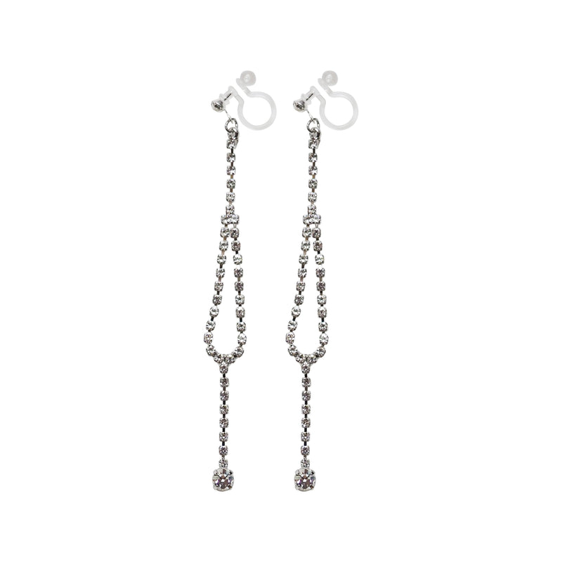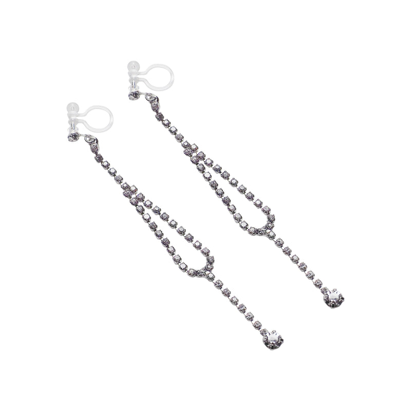 These are elegant style long teardrop rhinestone crystal invisible clip on earrings. They dangle elegantly and shimmer a lot. These invisible clip on earrings are suited for daily wearing, wedding, date, prom, or any occasions you want to be more charming and get more compliments. They are versatile! And the net weight of these earrings is only 2 g and these are lightweight! You will be free from the pinching pain! Why don’t you add these trendy invisible clip on earrings to your wardrobes?