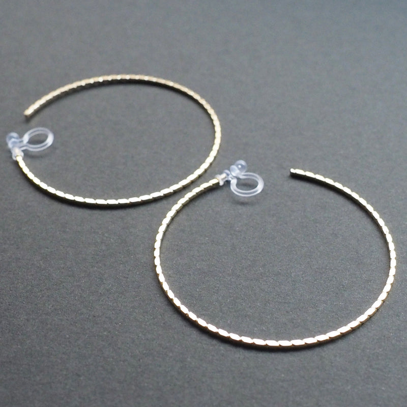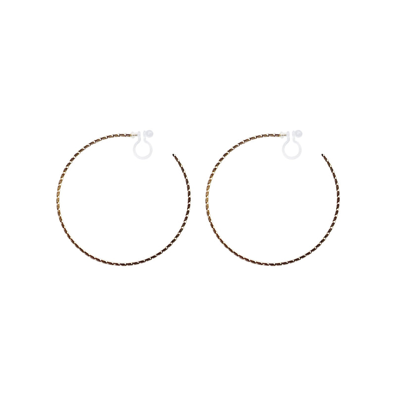Gold Large Thin Invisible Clip On Hoop Earrings